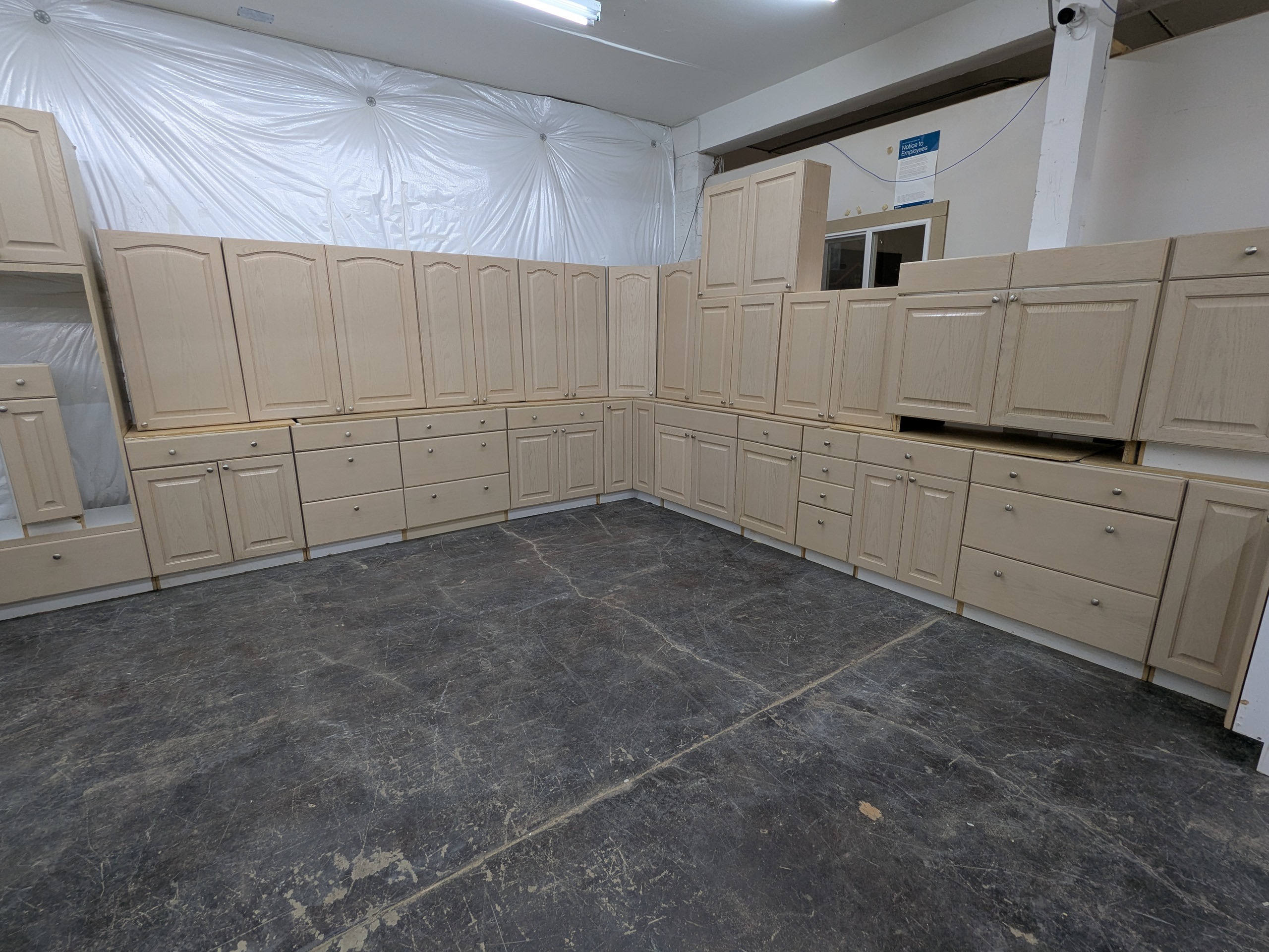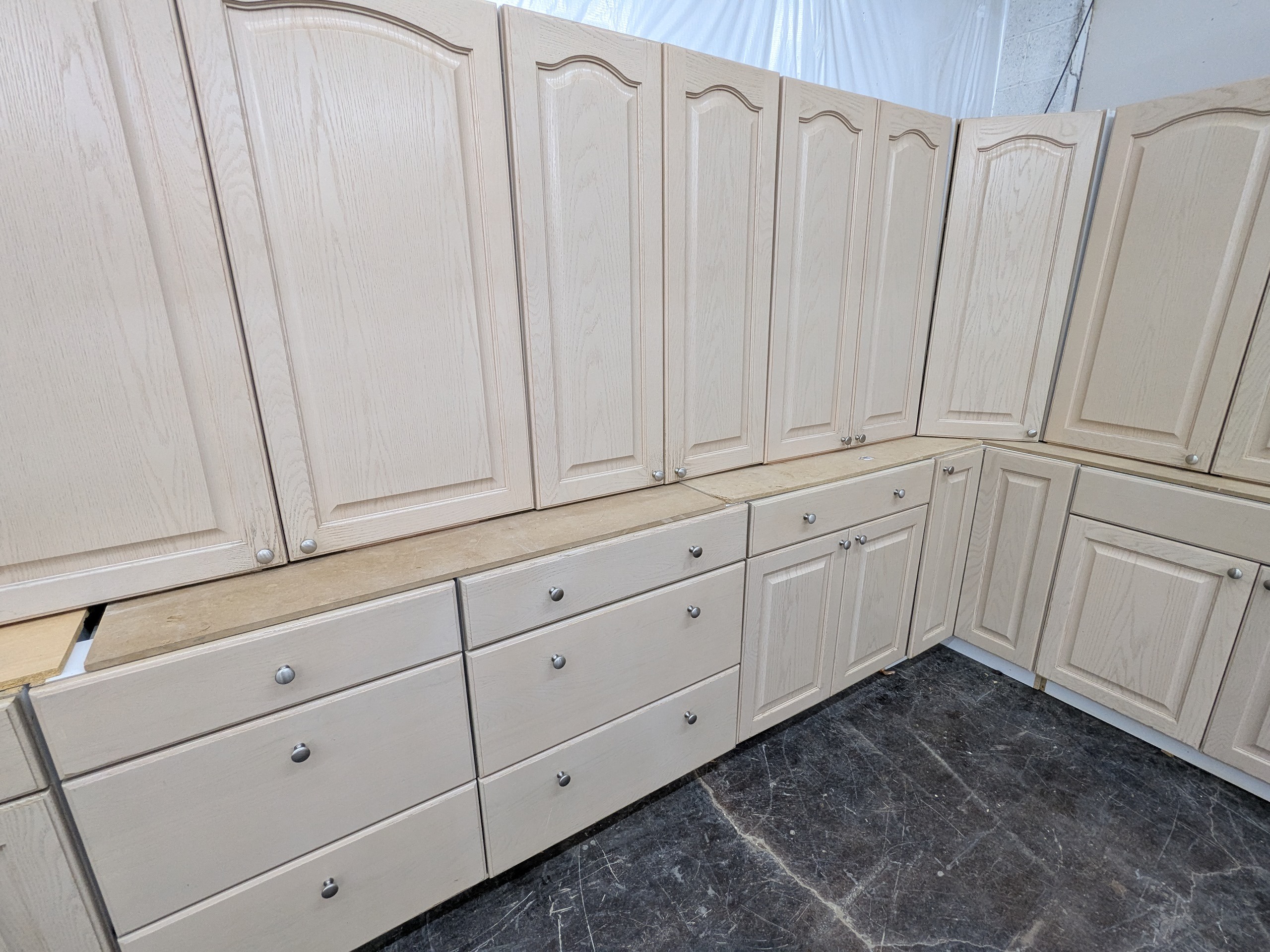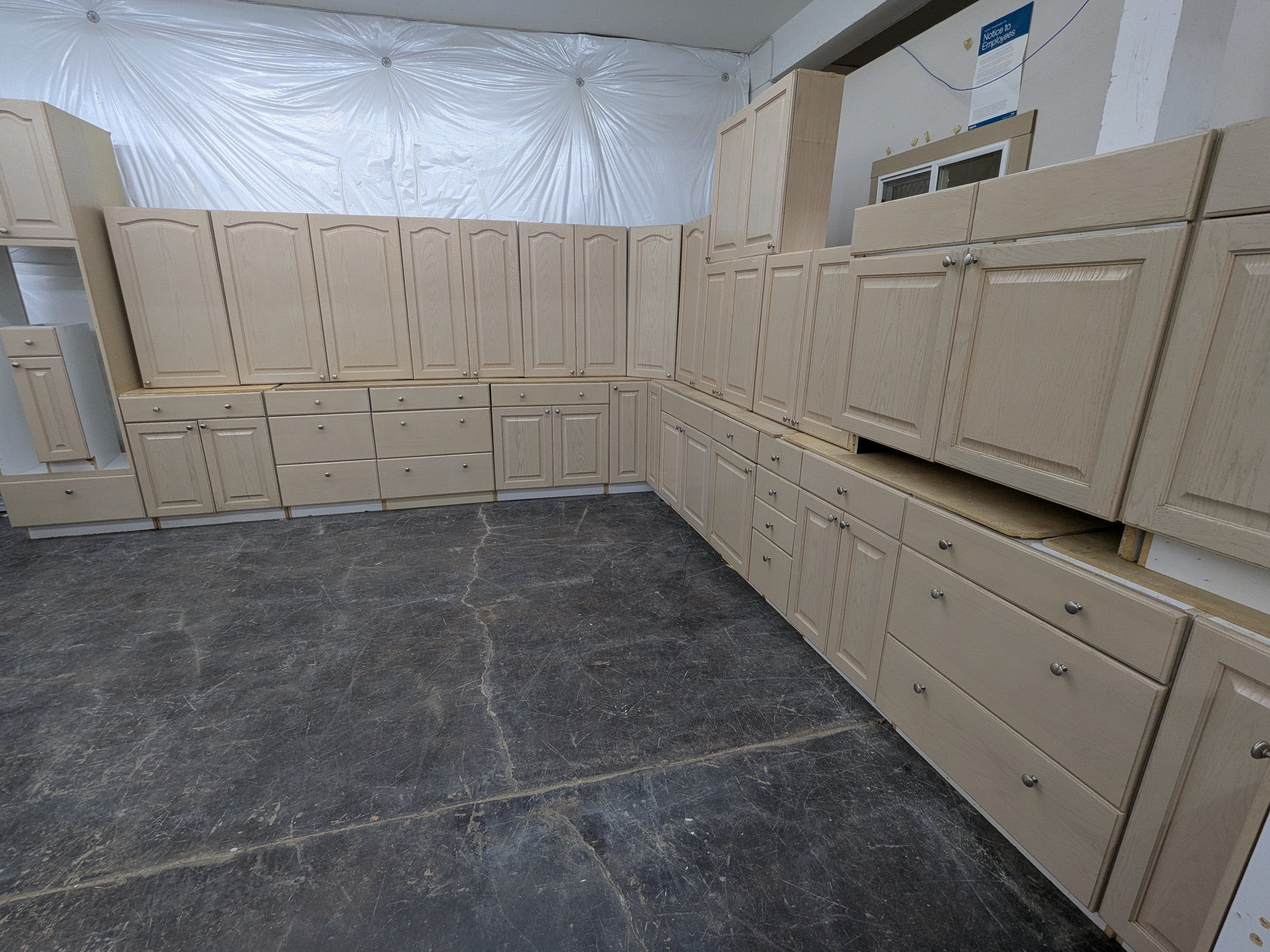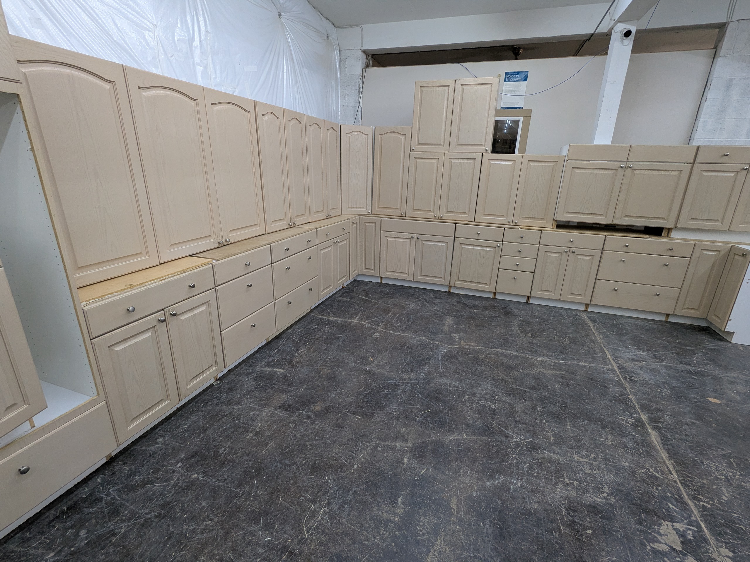 Our photos and videos of each warehouse staged kitchen clearly show and explain what’s included in the price of the set, but most sets also come with a number of free bonus items. These may include end panels, crown molding, trim pieces, toe kick, countertop pieces, sinks, and faucets. The buyer is welcome to either take these items or leave them with us, but Ben’s can not be liable for damages to these pieces.