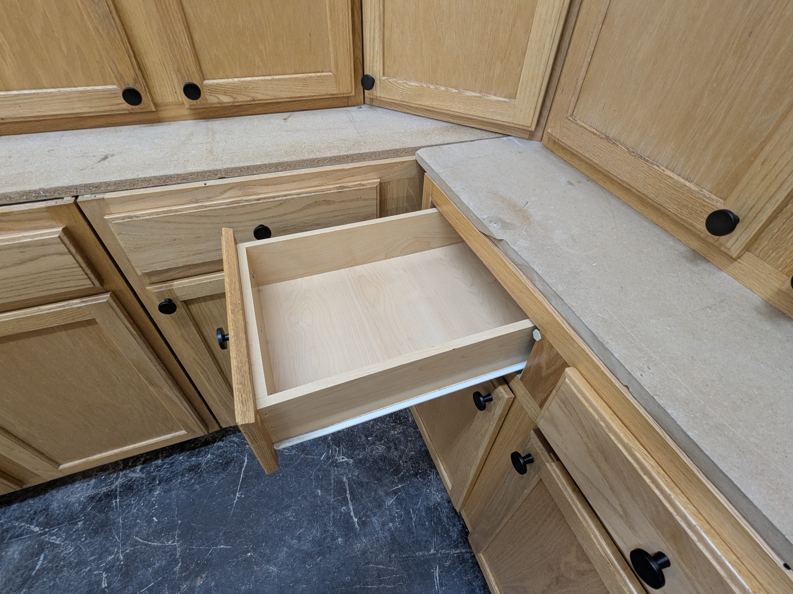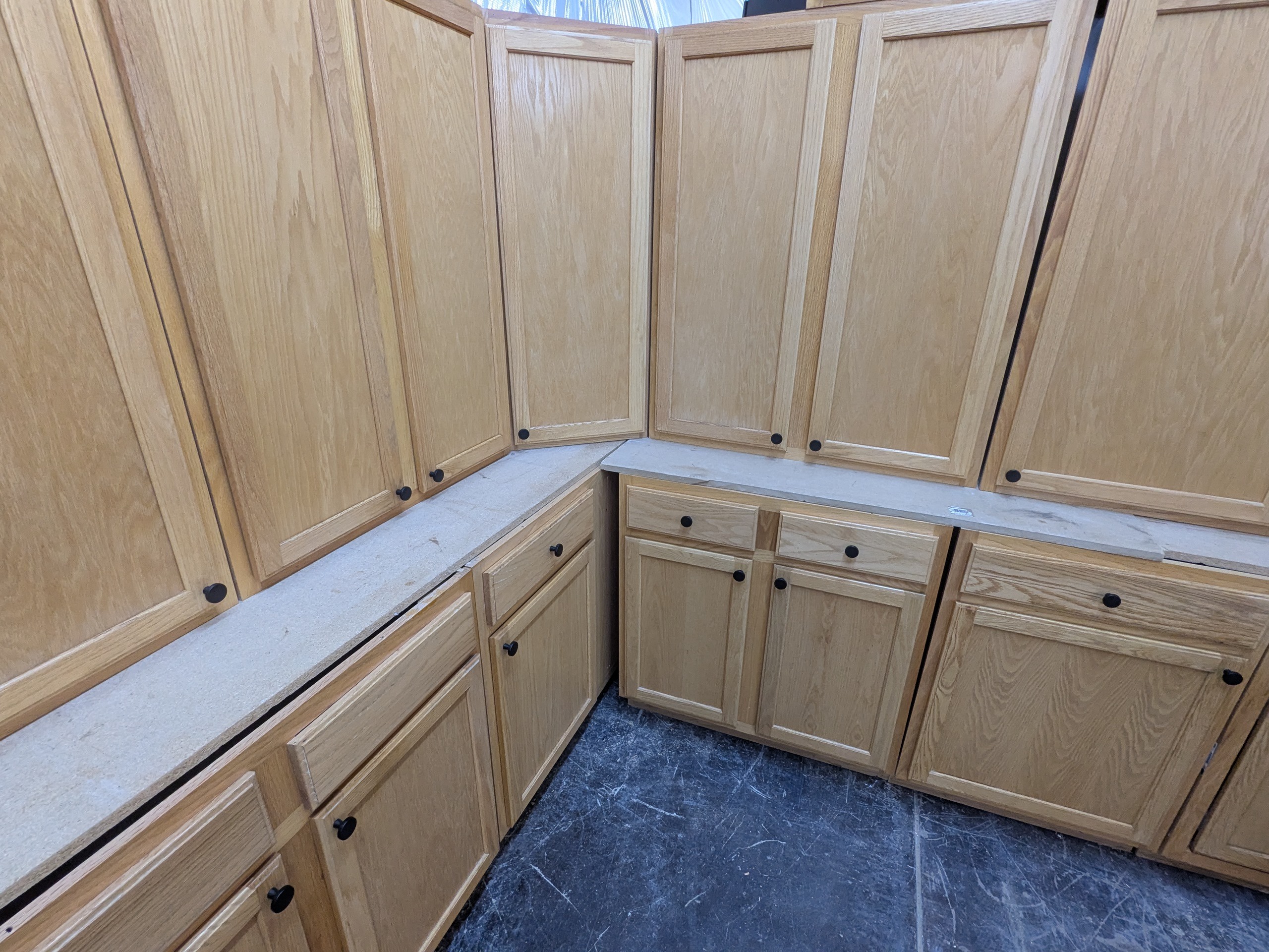 Our photos and videos of each warehouse staged kitchen clearly show and explain what’s included in the price of the set, but most sets also come with a number of free bonus items. These may include end panels, crown molding, trim pieces, toe kick, countertop pieces, sinks, and faucets. The buyer is welcome to either take these items or leave them with us, but Ben’s can not be liable for damages to these pieces.